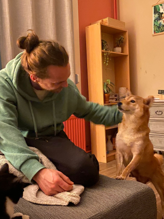 Ces quatre premiers jours avec elle se sont plutôt bien passés. Elle reste encore un peu sur la réserve et dans son coin, mais elle montre parfois de jolis élans de curiosité pour explorer la maison. En revanche, elle n’a quasiment rien mangé ni bu pour le moment, nous restons donc attentifs et patients pour lui laisser le temps de prendre ses marques. La seule chose qui ait l'air de fonctionner pour l'instant est la pâtée.
