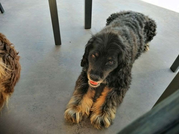 Fin octobre après des examens vétérinaires et des analyses laboratoires, il a été diagnostiqué Cushing. Après 2 semaines de traitement Vetoryl il a présenté un mégaoesophage qui a entraîné une bronchopneumonie. Malgré les traitements et les visites vétérinaires, il s'est dégradé et une ascite ainsi que des oedèmes pulmonaires sont apparus. Malgré les traitements, son état s'est aggravé hier et ce soir, il n'est plus. Notre chagrin est infini. Nous sommes reconnaissants d'avoir pu l'accueillir chez nous et d'avoir partagé tant d'excellentes aventures ensemble.