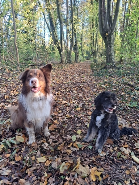 Wimpy adopté chez vous y a bientôt 10ans fait (accompagné de Twix depuis 4ans) fait connaissance avec Nelson, chien adopté chez vous par nos voisins, à Vieux Waleffe.